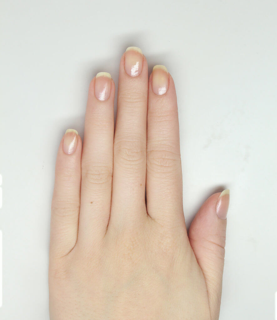 Passo 1 – Antes de iniciares esta manicura não te esqueças de usar o removedor de verniz para deixar as tuas unhas limpas e sem vestígios de verniz. Depois de limpares e limares as tuas unhas começa pela aplicação de uma camada de verniz “base coat” e deixa secar bem antes de passares ao próximo passo. Aqui foi usado o verniz JINsoon Power Coat.